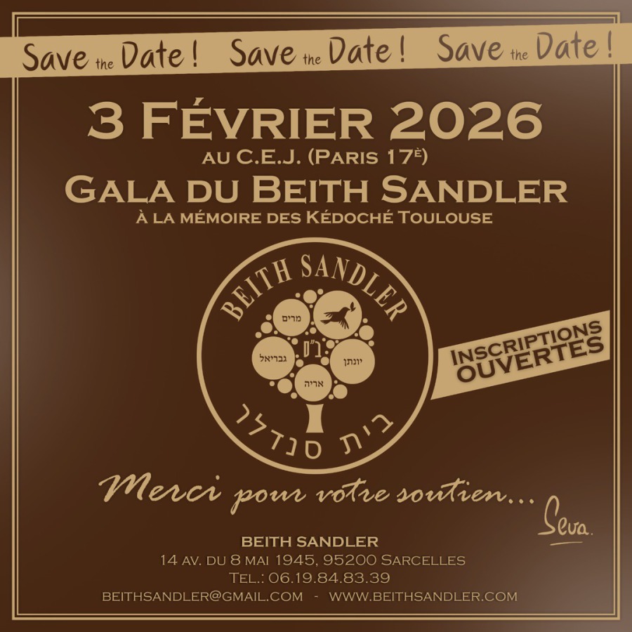 Afin que ces différentes activités puissent perdurer, un gala de soutien est organisé chaque année, à Paris. La contribution de tous les amis et sympathisants du BEITH SANDLER est aussi précieuse qu'essentielle pour poursuivre l'oeuvre inachevée de nos chers disparus.
